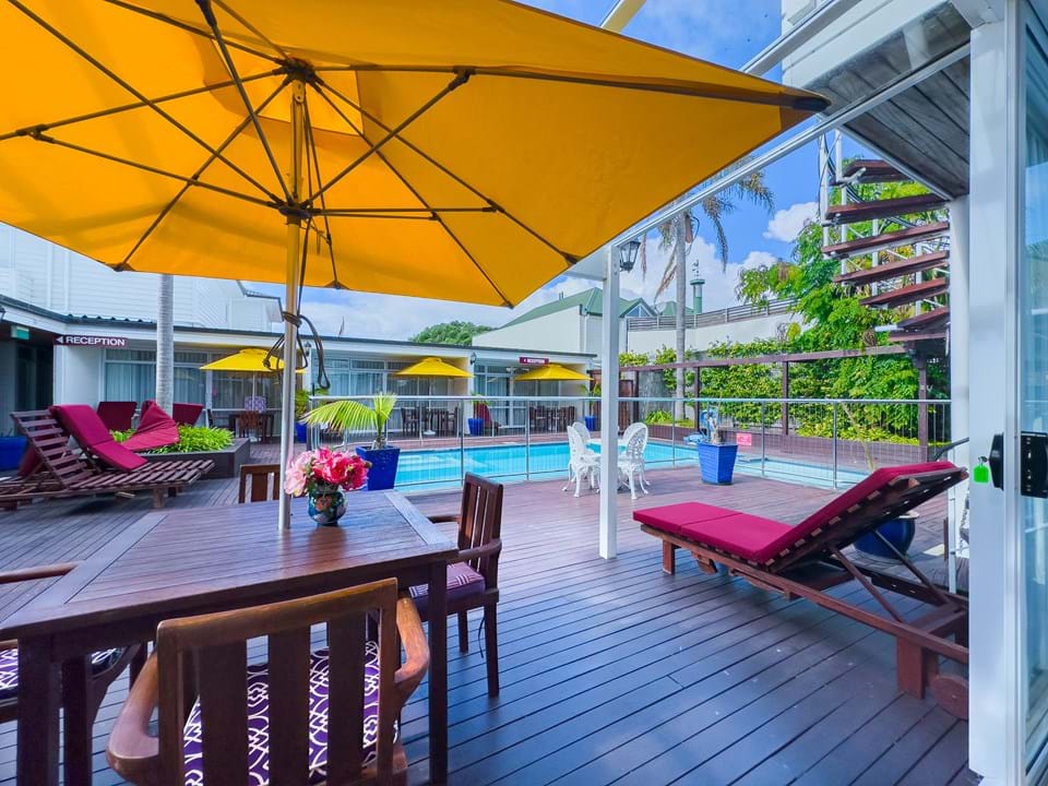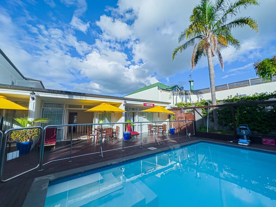 Look out over the pool with private rear decks and an outside area facing the pool.
