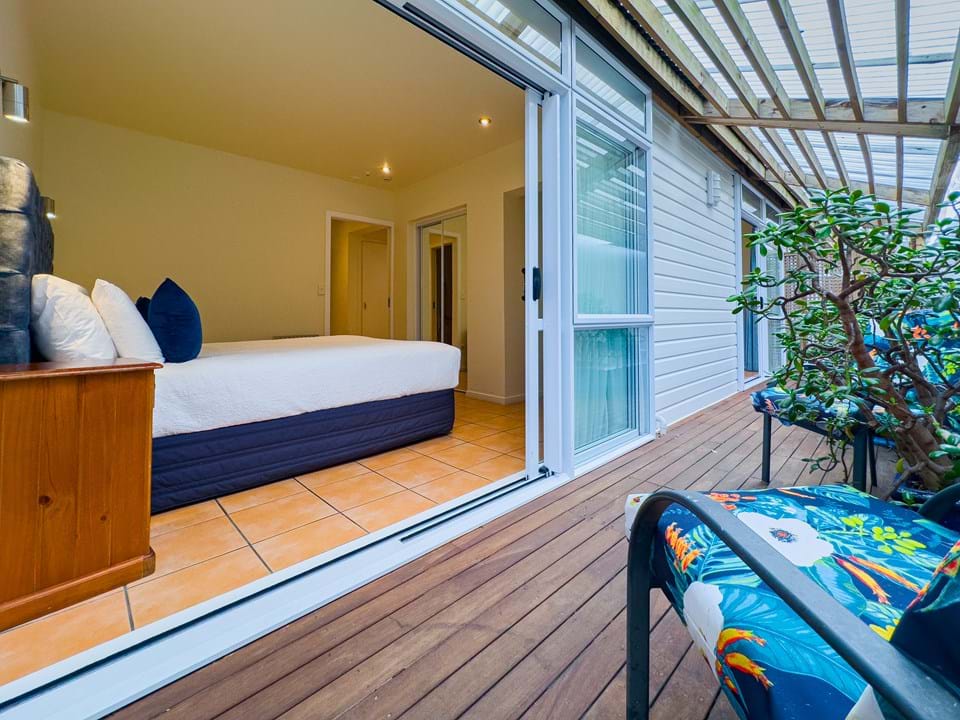 Situated slightly away from the pool and features private front and rear outdoor areas.